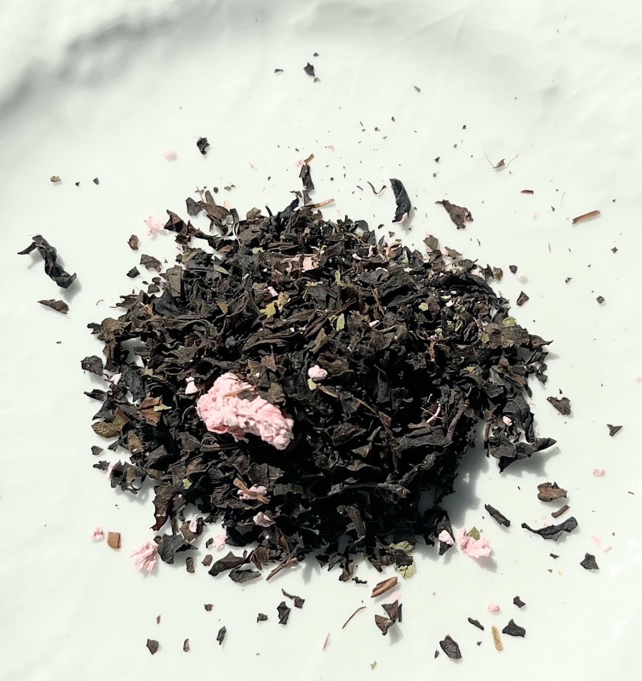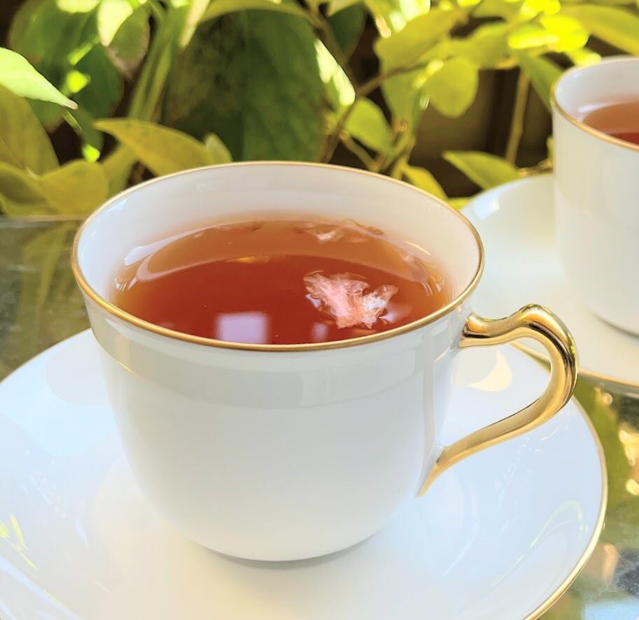 プレミアムダージリン紅茶に、ブレンドしたのは、大島桜の葉と、フリーズドライの桜の花びら(国産)とアッサム紅茶のコク。