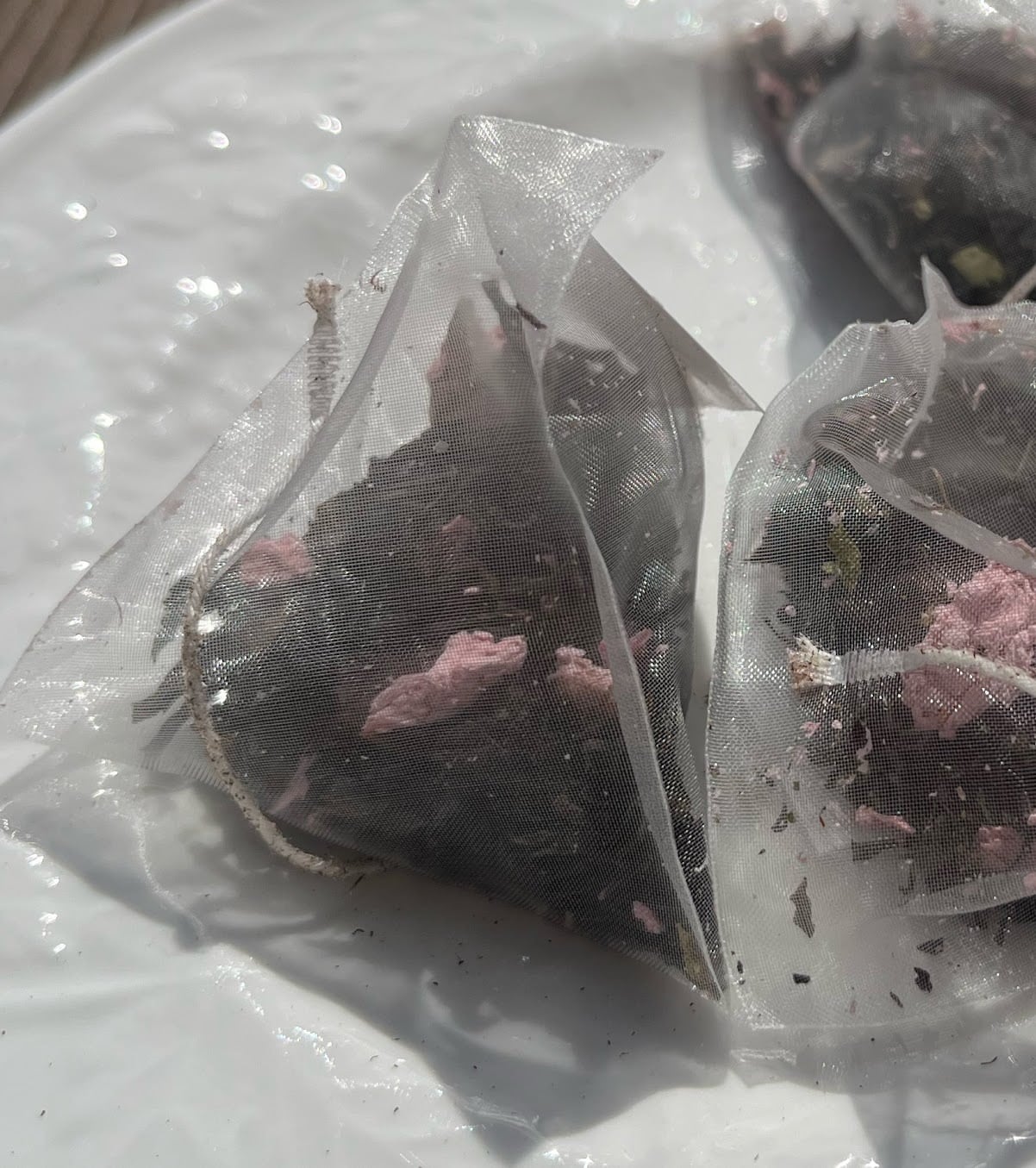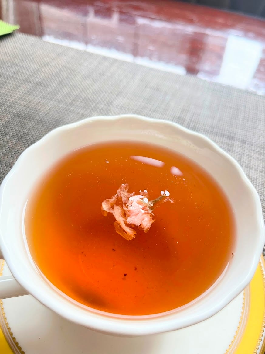 ※写真は、ティーバッグの中の花びらを浮かべました。